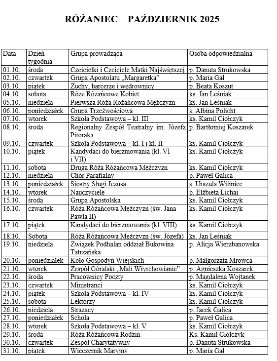 Kancelaria parafialna czynna codziennie, z wyjątkiem niedziel i świąt, po Mszach Świętych rannych i wieczornych przez pół godziny.